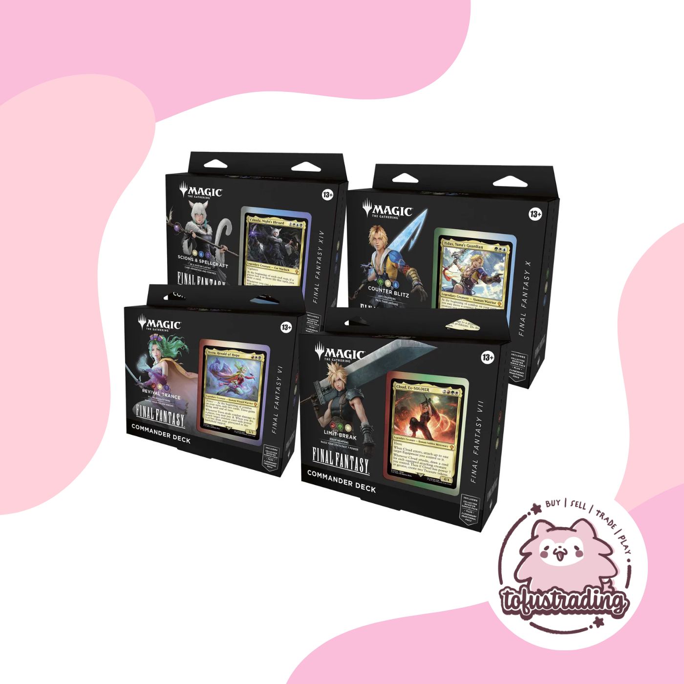 Each Magic: The Gathering—FINAL FANTASY Commander deck contains the following:
